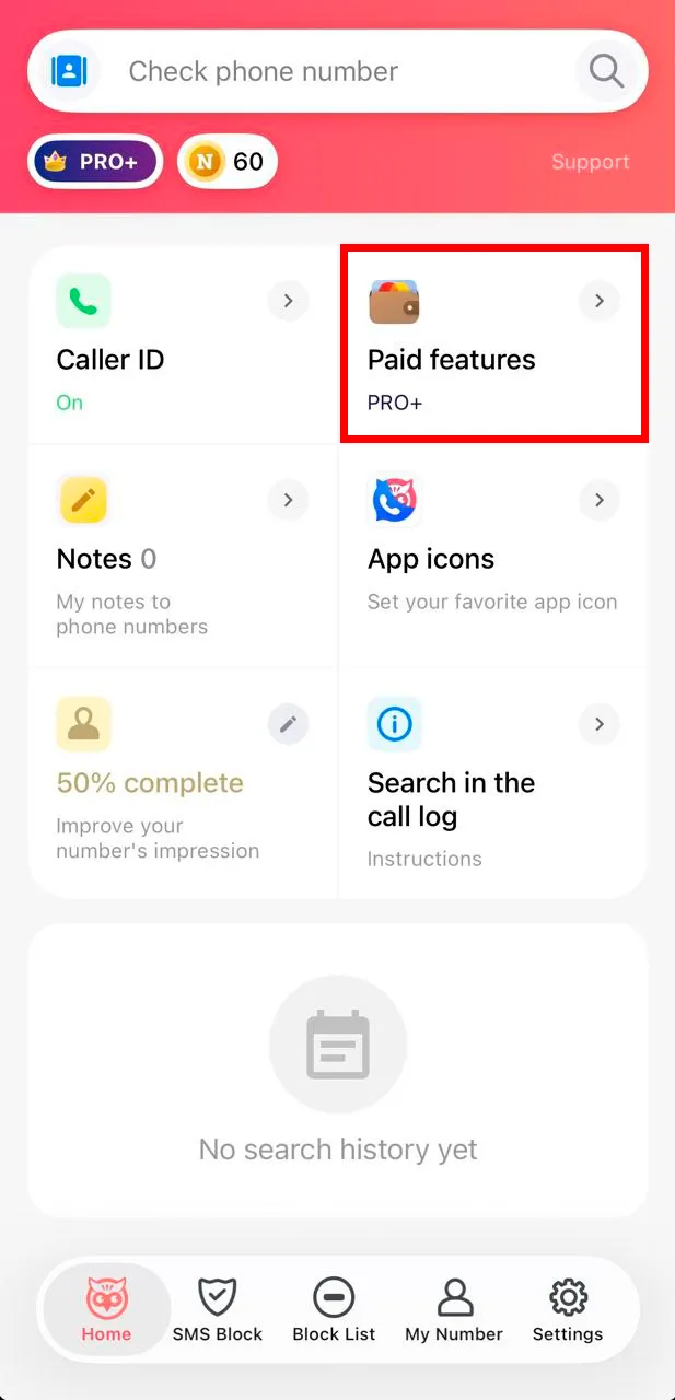 - Click the Paid Features option (wallet icon).